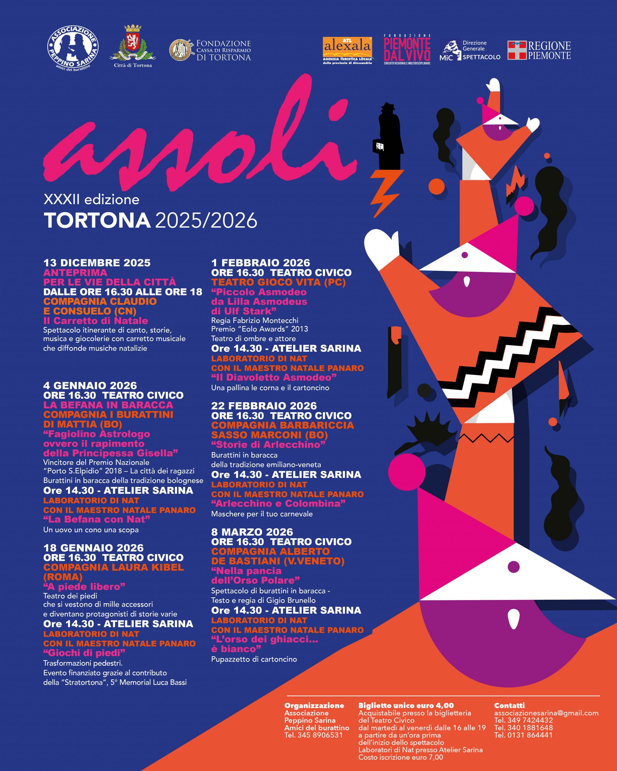 Gli spettacoli saranno preceduti dal Laboratorio di Nat a cura del Maestro Natale Panaro. Per iscrizioni telefonare al 342 7424432. Costo di partecipazione € 7.