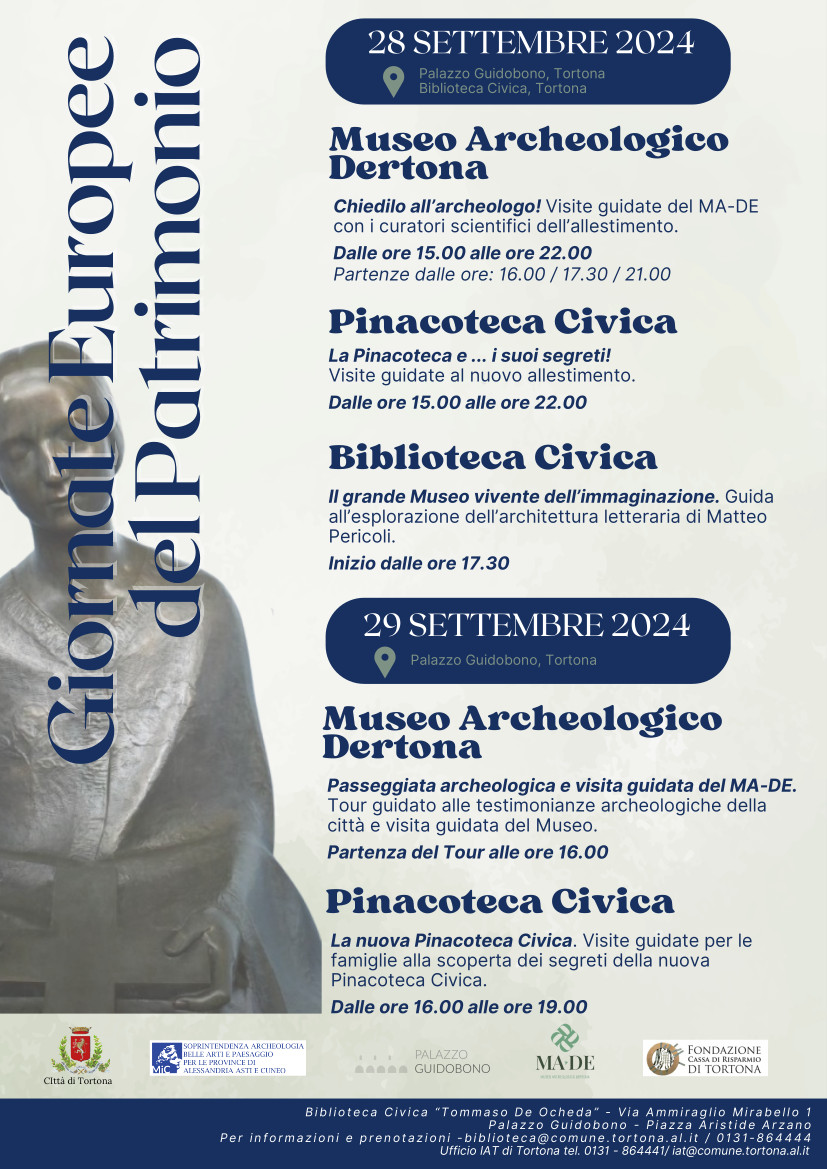 - MUSEO ARCHEOLOGICO DERTONA Passeggiata archeologica e visita guidata del MA-DE tour guidato alle testimonianze archeologiche della città e visite guidate del museo – partenza del tour alle ore 16