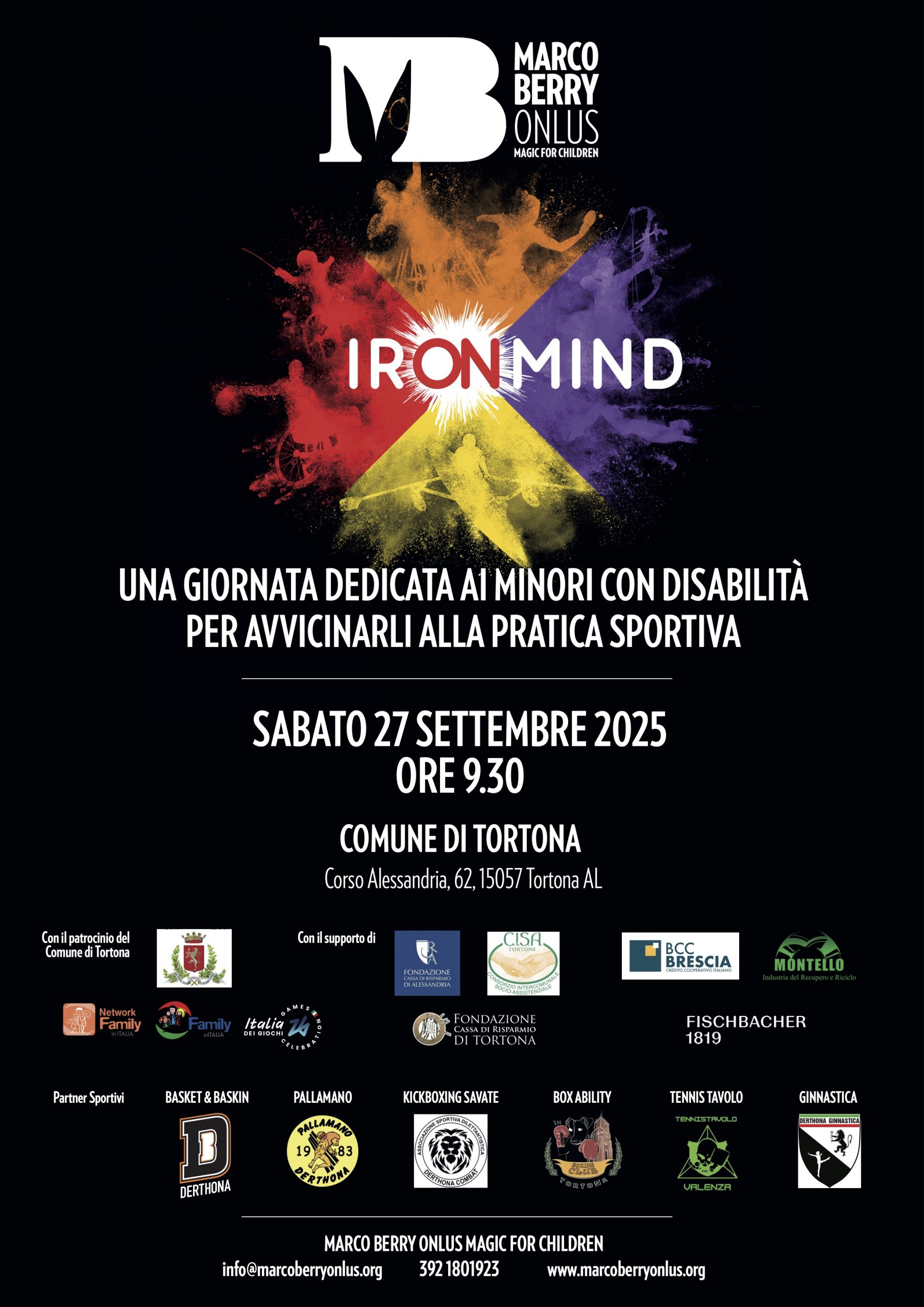 Sabato 27 settembre 2025 ritorna IRON MIND, evento promosso e sostenuto dall’AssociazioneMarco Berry Onlus in collaborazione con il Comune di Tortona e il CISA.